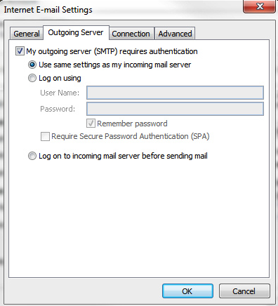 At the bottom is Outgoing Mail Server