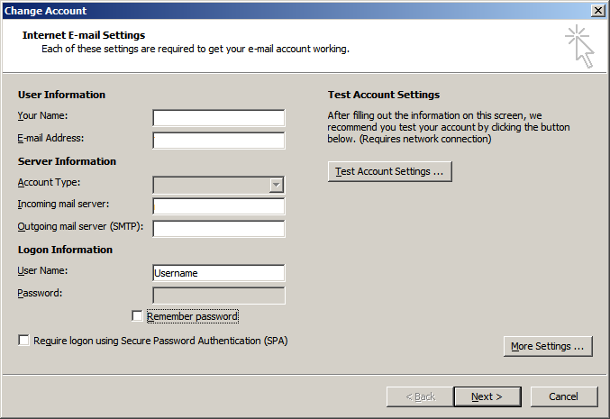 Step 6: To add a new e-mail account simply add users name and provide